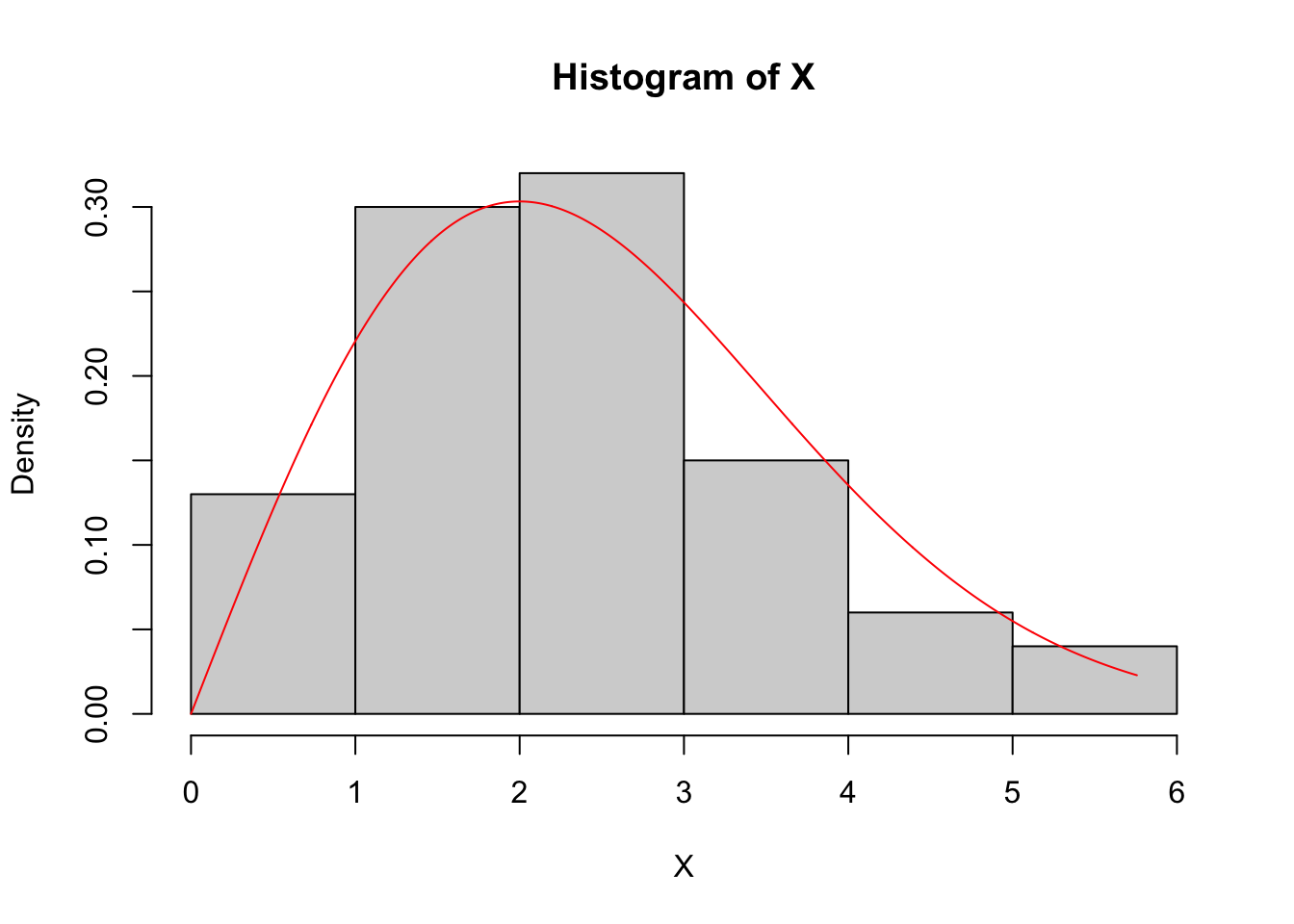from = 0, to = max(X), n = 1000, col = "red", add = TRUE)