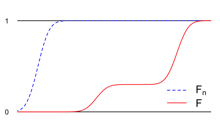 Imagine we have a random variable \(Y\) as well as an infinite sequence of random variables \(Y_1\), \(Y_2\), \(Y_3\), …, etc. Each of these random variables has a cumulative distribution function (CDF):