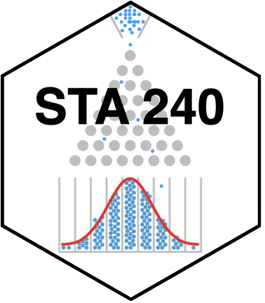 Sometimes we will write \(\exp(x)\) instead of \(e^x\), but they mean the same thing. We do this to make complicated expressions like this a little easier to read: \[ e^{-\frac{1}{2}\frac{(x-\mu)^2}{\sigma^2}}=\exp\left(-\frac{1}{2}\frac{(x-\mu)^2}{\sigma^2}\right). \]